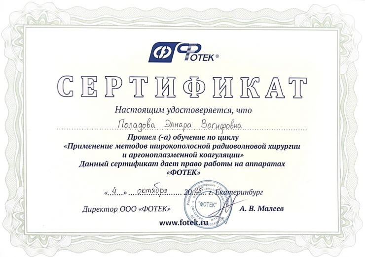 2025 год - курс повышения квалификации по программе "Патология шейки матки, влагалища и вульвы с основами кольпоскопии и широкополосной радиохирургии"