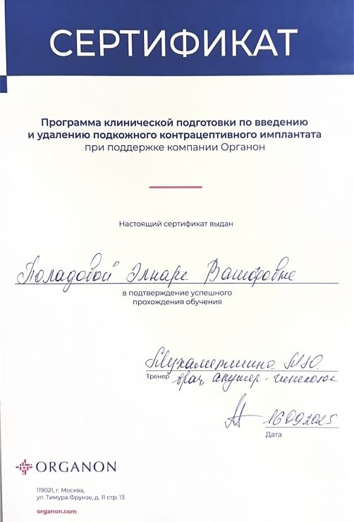 2025 год - курс повышения квалификации по программе «Эндокринные нарушения в гинекологии»